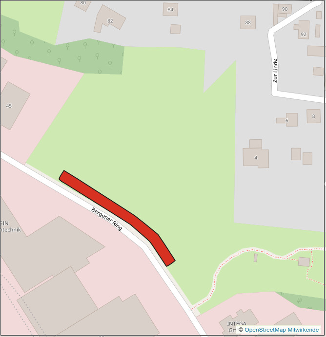 - In der Mitte ist eine Fahrspur (Breite 4m) freizuhalten.